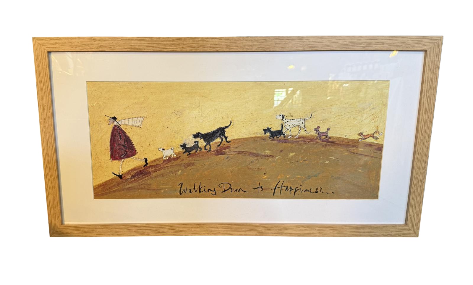 This item is a framed print titled "Walking Down to Happiness," created around 1980. The print is housed in a pine frame and falls under the categories of Art and Art Prints. It is associated with the Retro and Vintage historical periods.